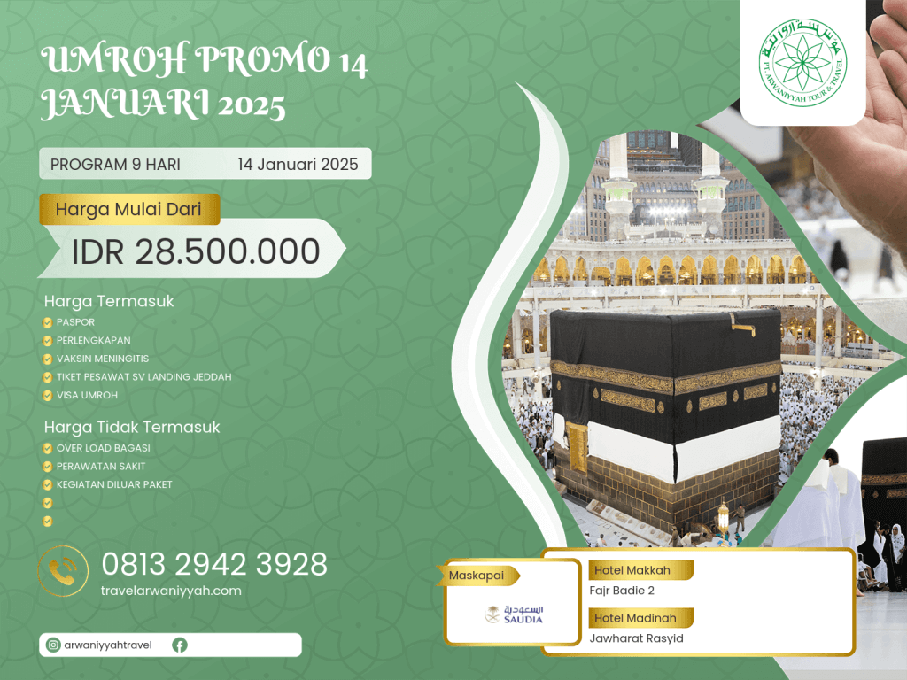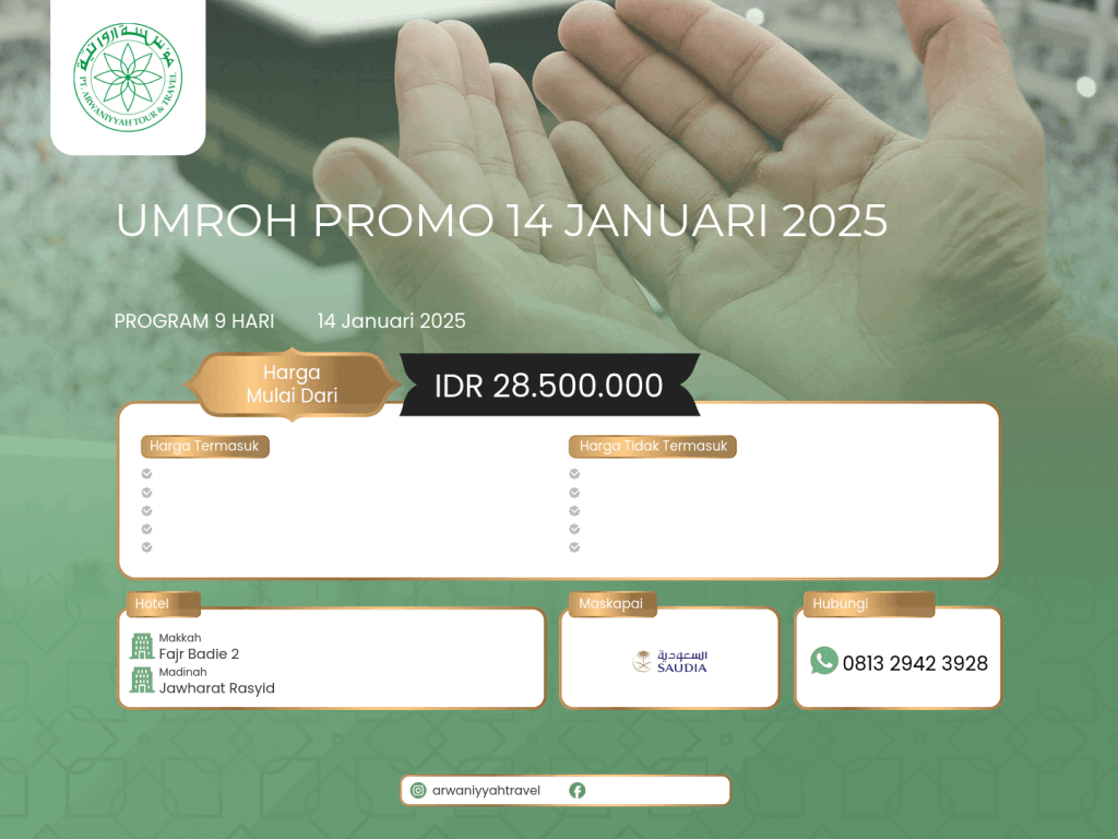 - 30 hari sebelum tanggal keberangkatan, dikenakan biaya pembatalan sebesar 25% dari harga paket.