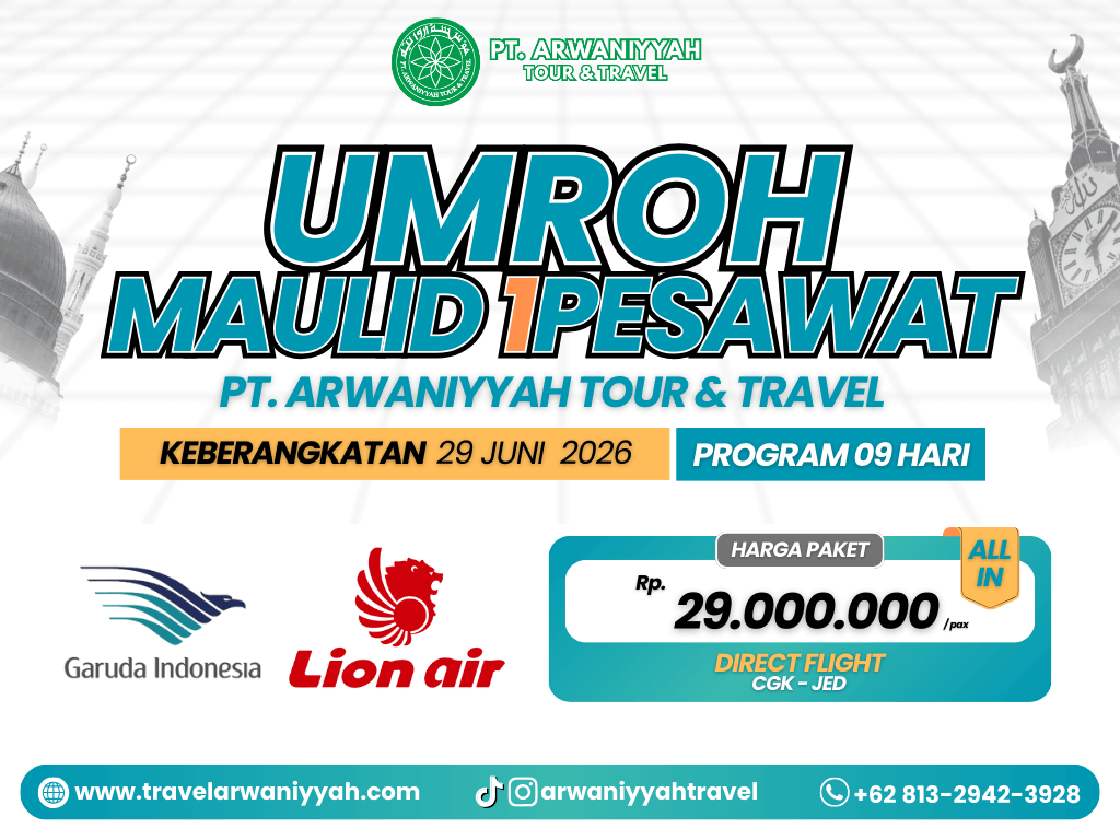 Promo Umroh 1 Pesawat 9 Hari 29 juni 2026